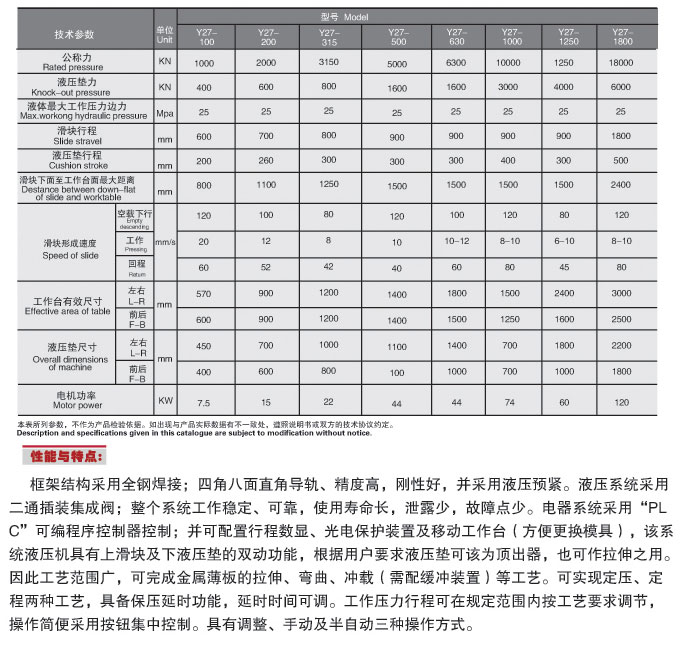 Y27-框架式單動薄板拉伸液壓機(jī)